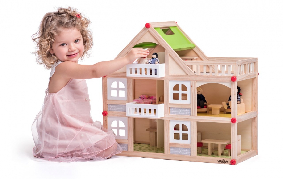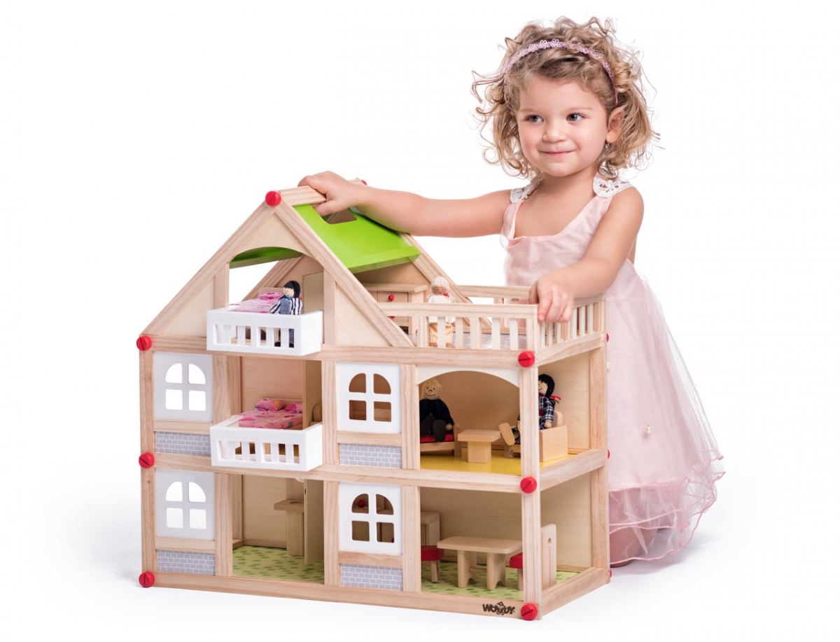 Casă de păpuși cu 2 etaje-balcon și accesorii